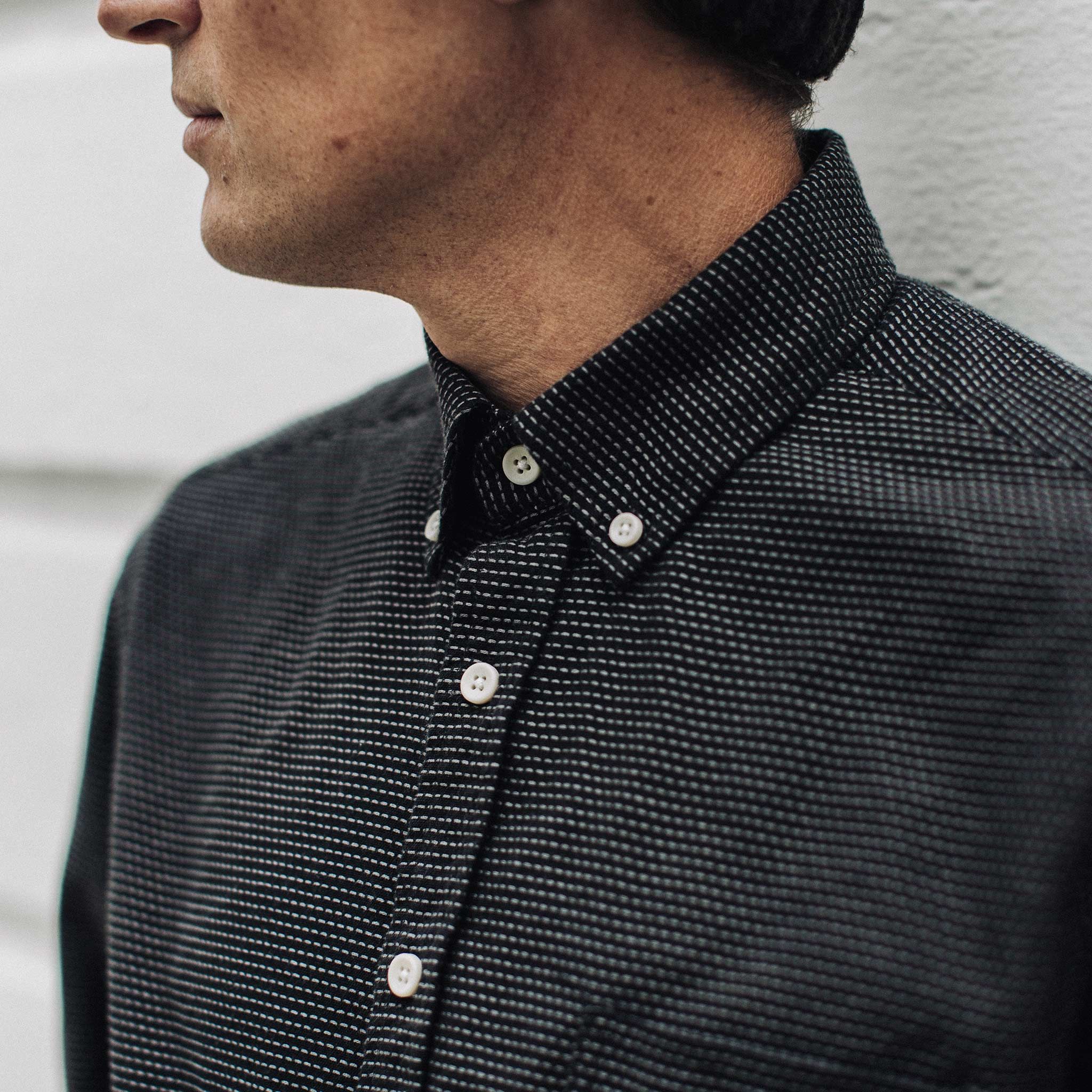 - Our signature Jack button down collar.