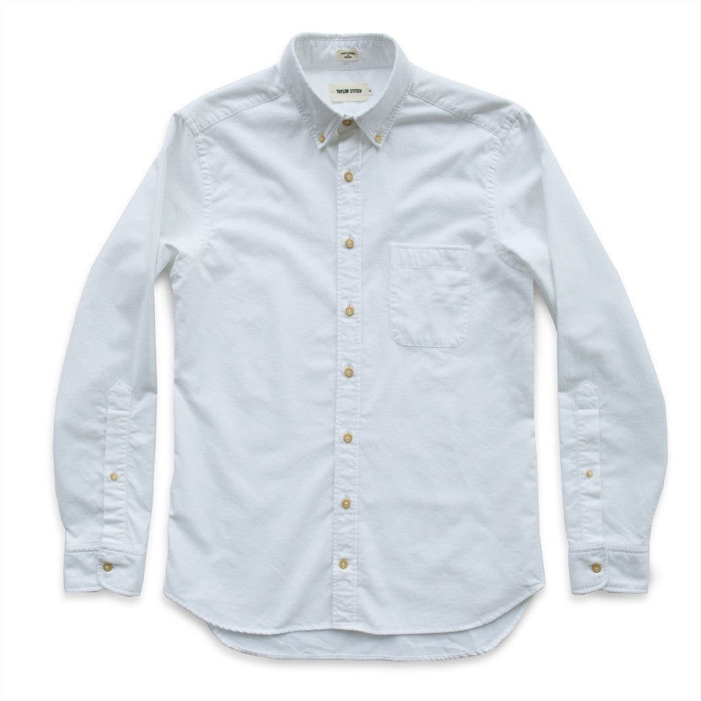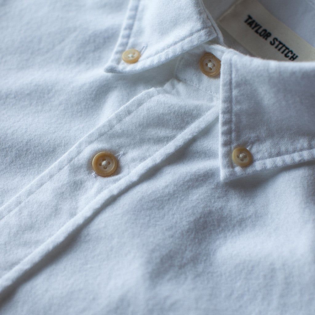 Our staple shirt has a tailored fit with a triple button collar. 7 years in the marking, this oxford comes in a brushed White fabric for extra softness.